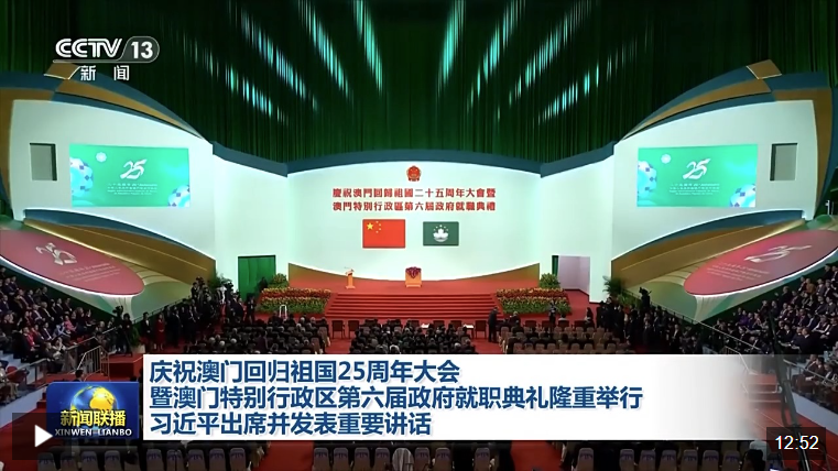 慶祝澳門回歸祖國25周年大會暨澳門特別行政區(qū)第六屆政府就職典禮隆重舉行 習(xí)近平出席并發(fā)表重要講話