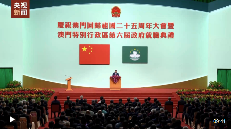 12月20日上午,慶祝澳門回歸祖國25周年大會暨澳門特別行政區(qū)第六屆政府就職典禮舉行。中共中央總書記、國家主席、中央軍委主席習近平出席并發(fā)表重要講話。