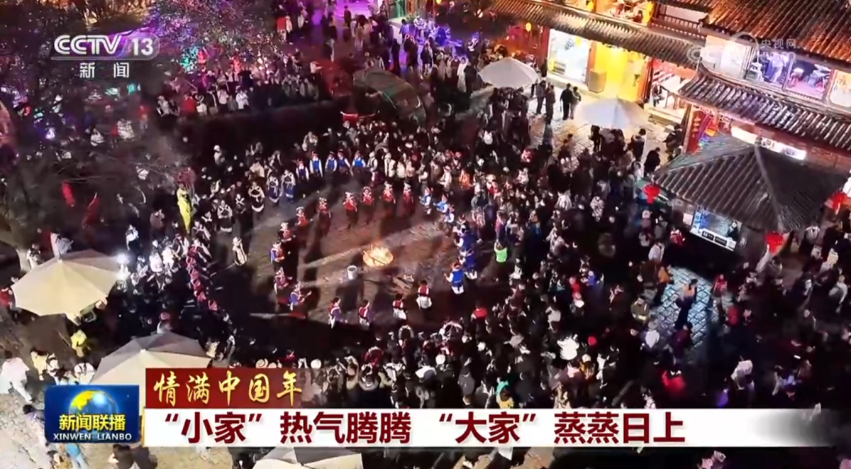 河山添錦繡,情滿中國年。城市鄉(xiāng)村張燈結彩、喜慶祥和,家家戶戶辭舊迎新、開心快樂。在鏗鏘的鼓樂聲中,在精彩的展演中,人們禮贊幸福生活,許下美好心愿。團圓時刻,一個個“小家”的熱氣騰騰,映照著祖國“大家”的蒸蒸日上。