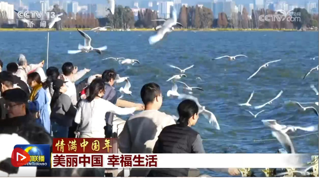 春節(jié)假期,云南昆明滇池沙鷗翔集、碧波蕩漾,在緊鄰滇池的福保社區(qū),人們跳起民族舞蹈,喜迎八方來客,共賞滇池生態(tài)美景。
