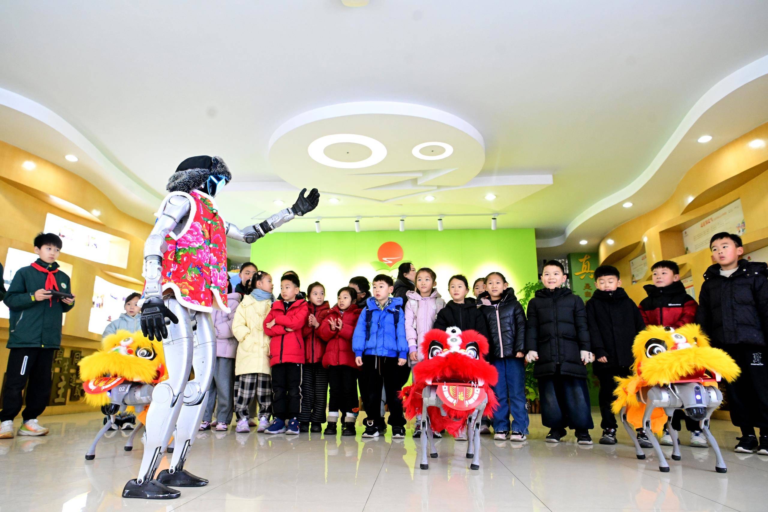 △2026年2月6日,江蘇太倉科教館工作人員攜帶機器人、機器狗走進當?shù)匦W為學生表演。